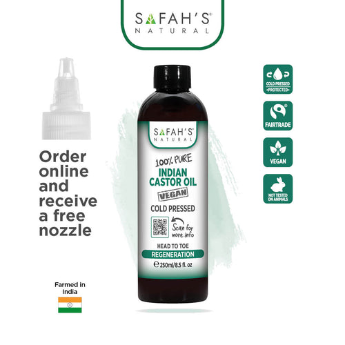 Safah's Natural Cold Pressed 100% Pure Indian castor Oil 8.5oz/250ml