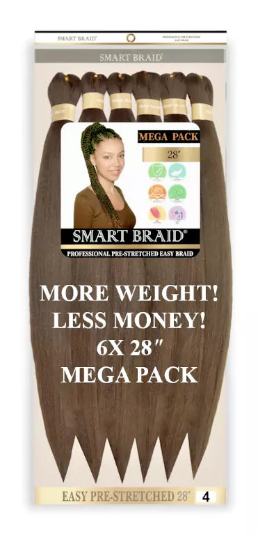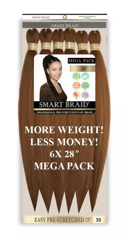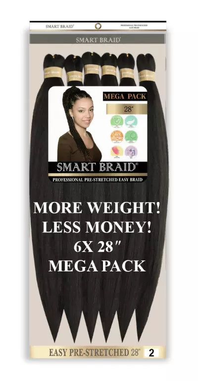 Smart Braid 6X  28" Pre-Pull Ultra Pre-Stretched Braiding Hair for easy braids