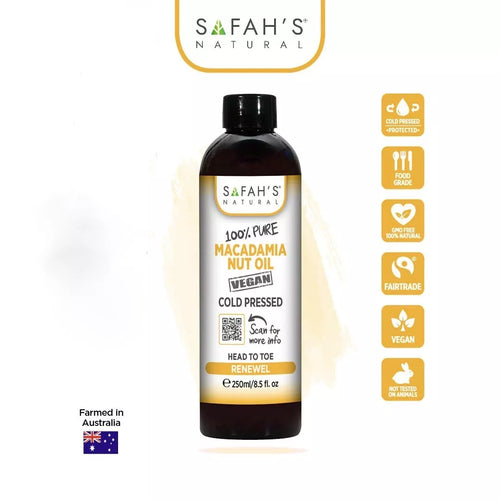 Safah's Natural Cold Pressed 100% Pure Vegan Macadamia Nut Oil 8.5oz/250ml